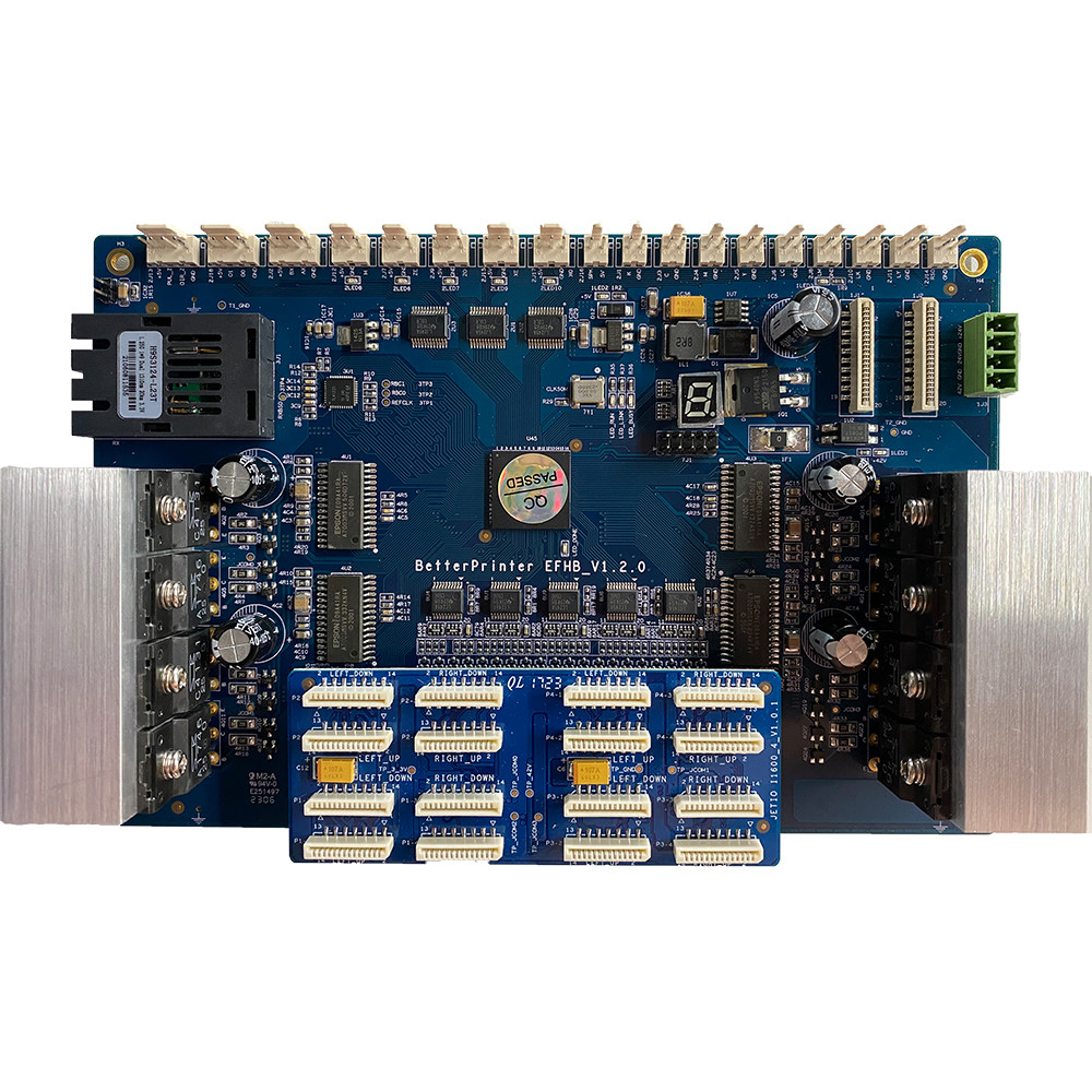 I1600 Placas de jato de tinta de quatro cabeças para impressão a jato de tinta de máquina fotográfica, impressão UV em tela plana, transferência térmica de têxteis, estampagem a quente de tinta branca, impressão de rótulos de cristal, etc., existem soluções maduras.utilizando ligação por cabo de fibra óptica, velocidade de transmissão rápida.